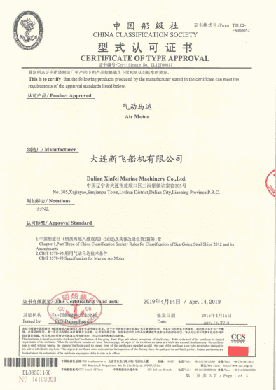 CCS 馬達(dá)型式認(rèn)可